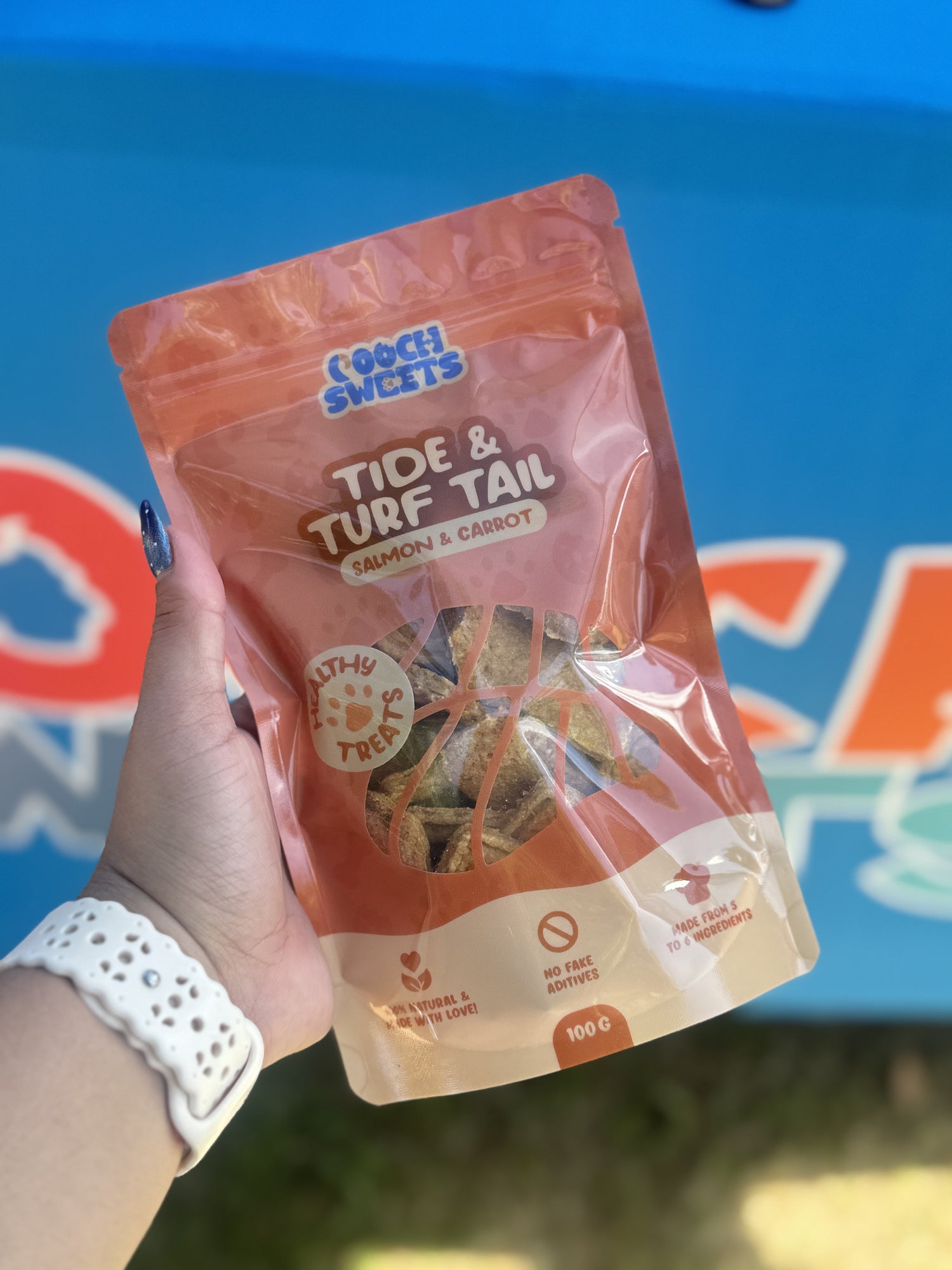 Each cookie is bursting with real salmon, providing a rich source of protein and omega-3 fatty acids to support your dog's overall health and vitality. Paired with carrots, which are packed with vitamins, minerals, and fiber, these cookies offer a nutritious snack that dogs and cats of all breeds will love.