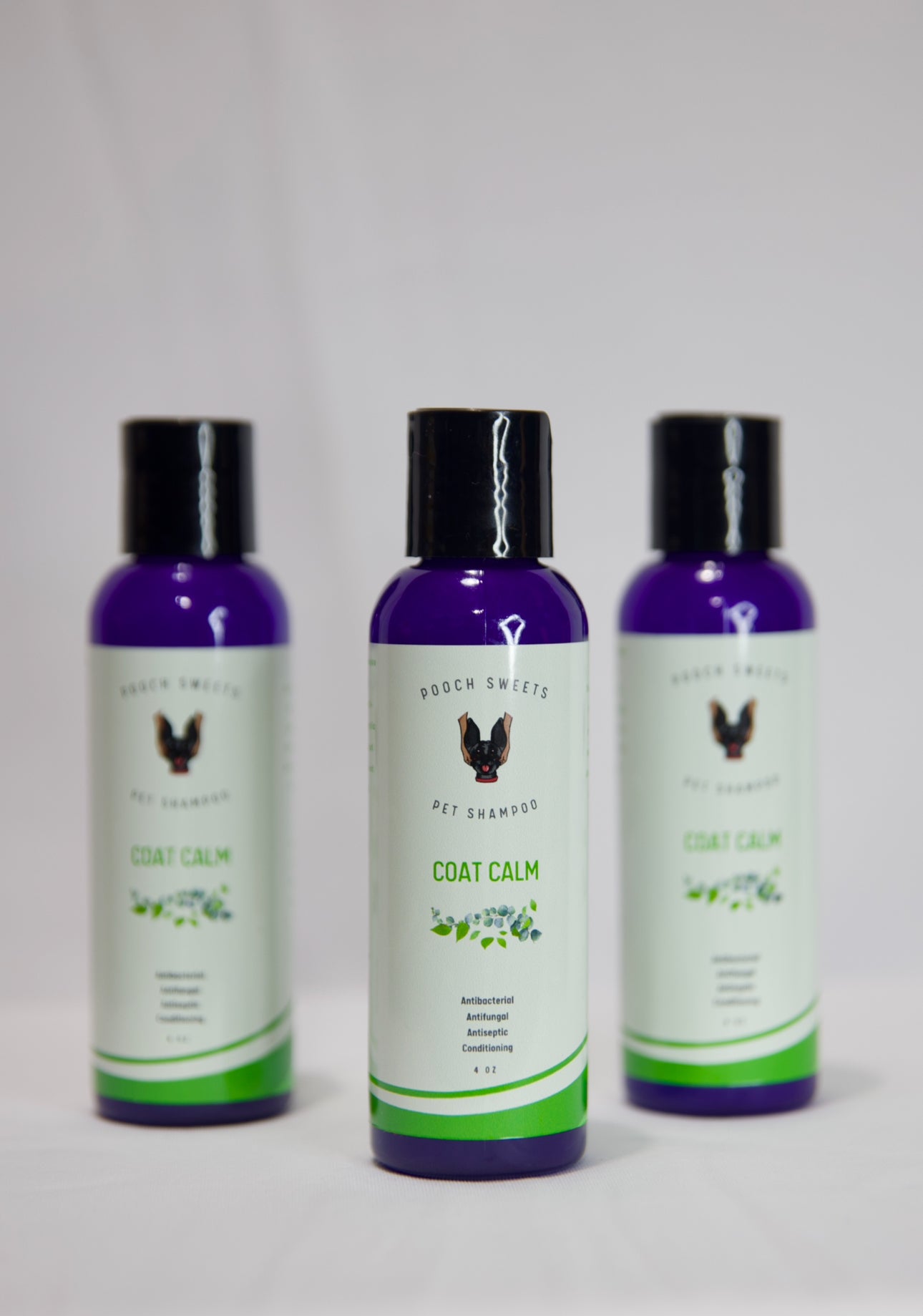 Directions Directions for use: Wet your pet's coat thoroughly with warm water. Apply a small amount of Coat Calm Shampoo to your hands or directly onto your pet's coat. Gently massage the shampoo into the coat, focusing on areas prone to dirt and odor. Allow the shampoo to lather, ensuring full coverage. Rinse thoroughly with water until the water runs clear. Towel dry your pet and brush their coat if desired.